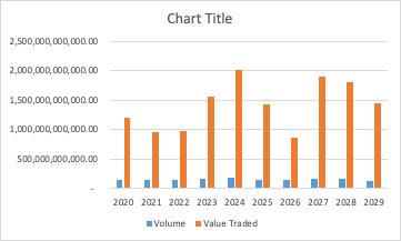 Chart 2: Hypothetical Trading Volume/Value of the Nigerian Stock Exchange for the next 10 Years based on Smart Contract.