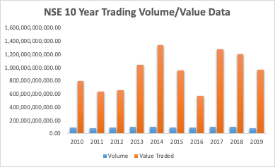 Chart 1: Trading Volume/Value of the Nigerian Stock Exchange for 10 Years